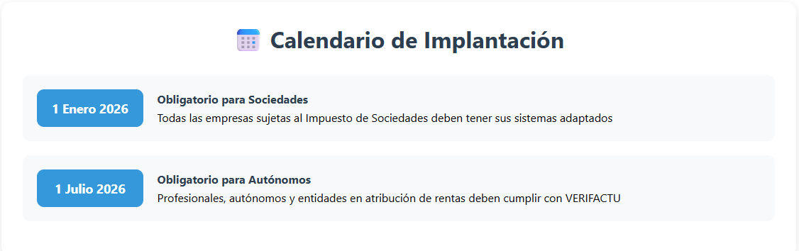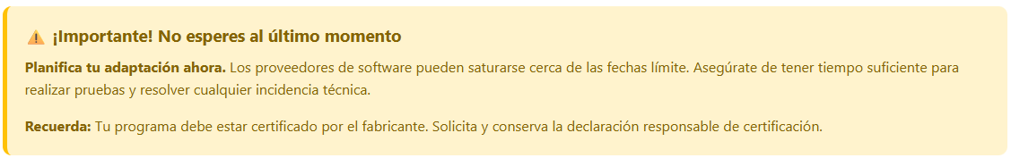 Importante: Los sistemas pueden adaptarse antes de estas fechas. La AEAT tiene sus servicios operativos desde julio de 2025.